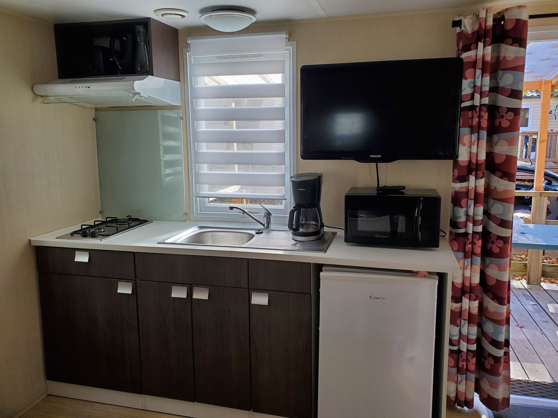 Tout le confort du mobil-home pour un agréable séjour à 2 personnes, avec chauffage et télévision inclus. Non-fumeur, animaux acceptés (1 maximum par hébergement).